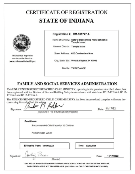 Blossoming Pre K is a certified program. Please see a copy of my registration below: