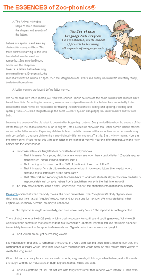 Please feel free to use this page as a reference to guide you and your child through the Zoo-phonics, alphabet learning program.